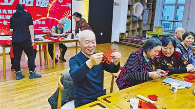 呼倫貝爾市鄂溫克族自治旗養老服務中心組織轄區老人開展剪紙活動。