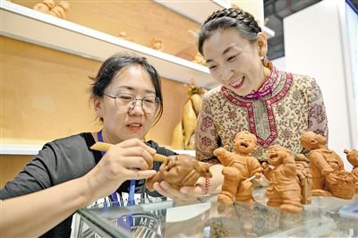 黃河泥娃展臺前,游客被“守藝人”精湛的技藝吸引。