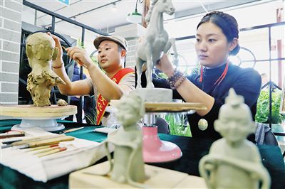 傳承人在興安盟興安領創·展示體驗中心為游客展示泥塑制作技藝。許文軍 攝
