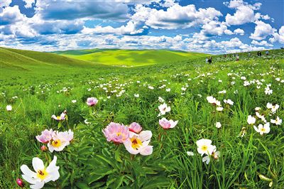 7月初,在錫林郭勒盟天邊草原烏拉蓋,占地2000畝的芍藥谷景區(qū),白的、粉的、桃紅的野生芍藥花開(kāi)如海。漫山遍野簇?fù)砭`放的芍藥花,吸引了無(wú)數(shù)游客來(lái)此觀賞游覽。