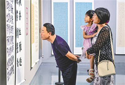 8月2日,觀眾在內(nèi)蒙古美術(shù)館欣賞書法篆刻作品。當(dāng)日,第五屆內(nèi)蒙古自治區(qū)青年書法篆刻作品展在內(nèi)蒙古美術(shù)館舉行,展出了全區(qū)175位青年作者創(chuàng)作的400余幅作品。該展覽旨在弘揚(yáng)中華優(yōu)秀傳統(tǒng)文化,為廣大青年作者提供更為廣闊的創(chuàng)作、展示、交流的平臺(tái)。記者 王磊 實(shí)習(xí)生 姚子超 攝