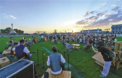 日落時分,派對上演。2024呼和浩特光影藝術節在大黑河軍事文化樂園開幕以來,吸引了眾多市民游客前來游玩。露營、演藝、非遺、美食……光影之間,人們赴一場日落派對,盡情釋放自我。(記者 王磊 攝)