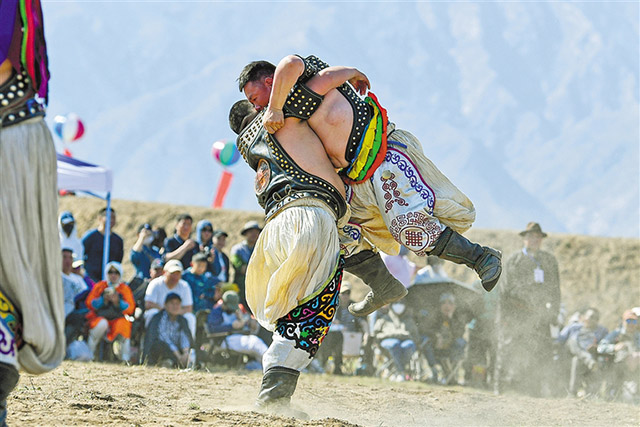 呼和浩特市土默特左旗哈素海杯搏克爭霸賽現場,256名搏克手披掛上陣,展開激烈角逐。記者 王曉博 攝