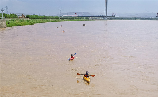 游客在黃河烏海市海南區段進行漂流。近年來,烏海市依托獨特地理優勢,整合烏海湖、黃河西行客棧等旅游資源,積極開展水上運動、徒步探險、沙漠越野等特色的體育賽事,吸引全國各地的游客暢游烏海。記者 孟和朝魯 攝
