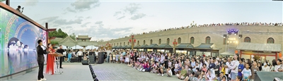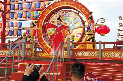 在“烏蘭察布之夜”旅游休閑街區(qū),12處主題演繹輪番上演,“塞上弦樂(lè)”“篝火盛會(huì)”等精彩節(jié)目,帶領(lǐng)游客穿越古今,領(lǐng)略地方風(fēng)韻。記者 郭奇男 攝