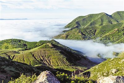 烏蘭察布市涼城縣境內(nèi)的蠻漢山,雨后呈現(xiàn)云霧繚繞的美景。