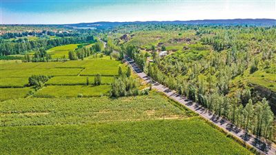 汽車行駛在翁牛特旗的全國十大最美農村路——烏白公路。記者 馬駿馳 攝