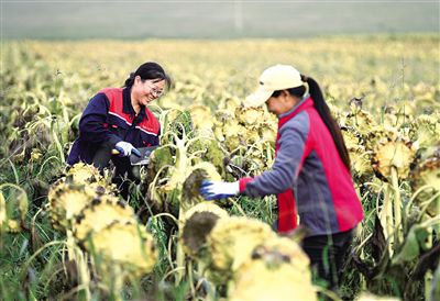 國慶假期,蘇尼特右旗賽漢塔拉鎮腦敏塔拉嘎查張桂琴家的400畝向日葵迎來了收獲季。近年來,當地積極調整種植結構,通過發展向日葵等經濟作物種植,不斷增加農民收入。 記者 巴依斯古楞 攝