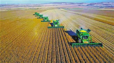 在呼倫貝爾市莫力達瓦達斡爾族自治旗522萬畝大豆田里,大型聯合收割機在田間穿梭,伴隨著隆隆的機械轟鳴聲,切割、脫粒、粉碎等作業一氣呵成,處處洋溢著豐收的喜悅。