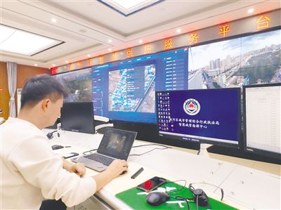 工作人員正在巴彥淖爾市臨河區智慧供熱服務平臺監看供熱數據。