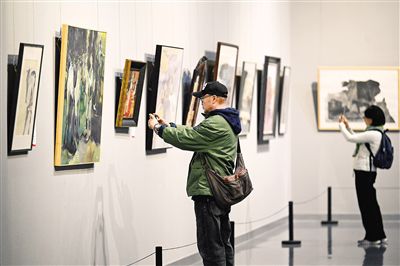 11月1日,觀眾在內蒙古美術館參觀美術作品。當日,為紀念中俄建交70周年、“一帶一路”倡議提出10周年,2024年第三屆“一帶一路”中俄美術作品展開展。本屆展覽共收到中俄藝術家作品1874件,最終有210件作品入展。記者 王磊 攝