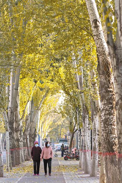初冬午后的斜陽(yáng)穿過(guò)樓宇,把溫暖灑在樹梢,留在心間。人們賞景、漫步、趕路……冰雪覆蓋前,萬(wàn)物冬藏前,那一抹殘留的秋色,蘊(yùn)含著人與自然彼此的眷戀。(記者 懷特烏勒斯)