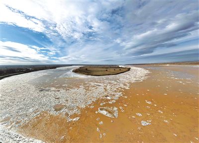 11月28日,黃河內蒙古托克托縣段流凌。近幾日,黃河內蒙古托克托縣段流凌密度持續增加,朵朵冰凌花順流而下,畫面十分壯觀。據呼和浩特市托克托縣水務局副局長曹廣明介紹,今年流凌較往年推遲13天。記者 鄭學良 攝