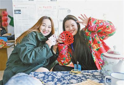 游客在呼倫貝爾市根河市的中國冷極村體驗民俗剪紙藝術。記者 孟和朝魯 攝