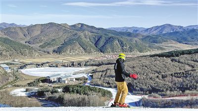 滑雪愛好者在赤峰市喀喇沁旗美林谷滑雪場滑雪。記者 肖璐 攝