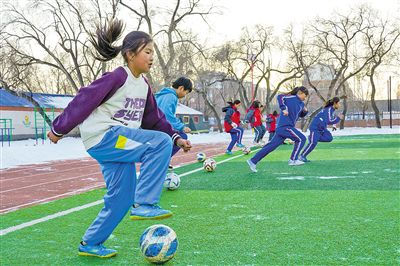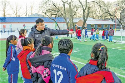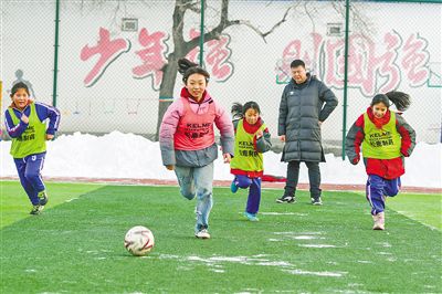 隆冬時節,一群追風女孩兒臉蛋凍得通紅,卻不畏嚴寒、堅持訓練,與足球共舞。伴隨孩子們的是教練穆華利的大嗓門,他總是反復強調著運球射門等動作要領。穆華利2017年來到學校任教,訓練從未缺席。在他看來,很多女生在班級里成績優秀但是性格靦腆,是足球讓她們變得堅韌陽光起來。