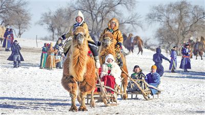1月12日,游客體驗(yàn)駱駝拉雪橇。當(dāng)日,穿越草原“99號”公路——遇見草原雪鄉(xiāng)駱駝文化那達(dá)慕在錫林郭勒盟西烏珠穆沁旗烏蘭哈拉嘎蘇木新高勒嘎查舉行。近年來,該旗持續(xù)打造銀色西烏珠穆沁旗文化旅游品牌,激發(fā)民眾參與熱情,有效提升冬季旅游的知名度和影響力。記者 巴依斯古楞 攝