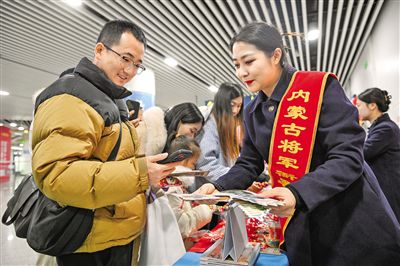 1月20日,呼和浩特博物院的講解員在新華廣場地鐵站與乘客互動。當日,為積極推進“歌游內蒙古·冰雪悅青城”冬季冰雪活動,講好青城故事,呼和浩特博物院開展了“北疆文博地鐵行”系列活動,通過歷史文化宣講、趣味知識問答等互動體驗,讓乘客感受博物館獨特的歷史文化魅力。記者 王磊 攝