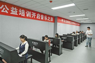 老師指導(dǎo)學(xué)員練習(xí)鋼琴。