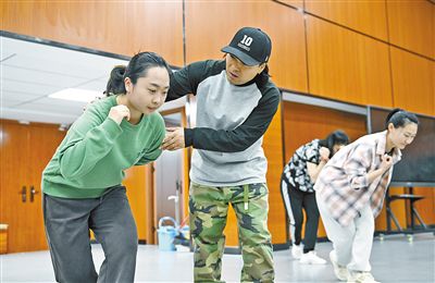 老師指導(dǎo)學(xué)員練習(xí)街舞動(dòng)作。