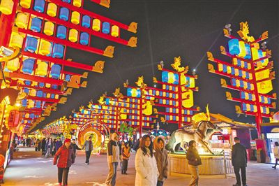 1月31日,游客在位于察右前旗的烏蘭察布之夜街區(qū)游覽。新春佳節(jié)期間,烏蘭察布之夜街區(qū)為游客準備了豐富多彩的節(jié)慶活動,讓大家感受濃濃的年味。記者 王磊 攝