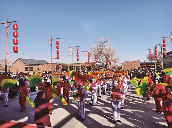 隨后,“黃河喜事”民俗巡演精彩上演。輕盈靈動的挑花籃、歡快熱烈的秧歌隊、詼諧幽默的騎驢和大頭娃娃等豐富多彩的表演項目逐一亮相。這些充滿地方特色的民俗表演,不僅展示了包頭地區的傳統文化,更讓現場觀眾感受到了濃濃的年味。表演隊伍從天下黃河第一村北大門出發,沿著南北街一路前行至黃河大舞臺前廣場。道路兩旁熙熙攘攘,市民邊看邊拍,邊吃邊聊,盡情享受難得的歡樂時光。