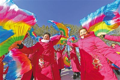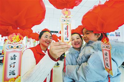 “今年的元宵節活動非常精彩,年味十足。”市民王寶財和家人一起參與猜燈謎和扭秧歌活動。