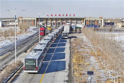 貨車在內蒙古邊境口岸往來穿梭。武兵 攝
