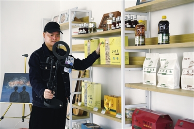 包頭市固陽縣金山鎮青年致富能手楊汶興線上銷售當地特色農產品。彭海霞 攝