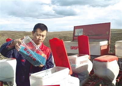 “全區農村牧區青年致富帶頭人”李慶國在田間查看種子。