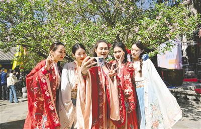 4月23日,身著漢服的博物館講解員和丁香花合影。當日,呼和浩特市將軍衙署舉辦“古風韻解丁香結,衙署藏珍溯文脈”將軍衙署博物館第十一屆丁香季主題活動,活動將持續至4月27日。本屆丁香季主題活動依托古風場景,通過設置豐富多彩的活動內容,讓游客在欣賞丁香花的同時,深入了解將軍衙署的歷史。記者 王磊 攝