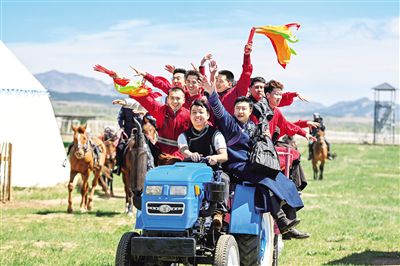 5月1日,烏蘭牧騎隊員在敕勒川草原為游客表演節(jié)目。“五一”期間,呼和浩特市烏蘭牧騎原創(chuàng)實景演藝劇目“歡騰的敕勒川”在敕勒川草原精彩上演,以“演出+旅游”觀演和互動相融的模式,向全國游客展現(xiàn)北疆風(fēng)情。記者 王磊 攝