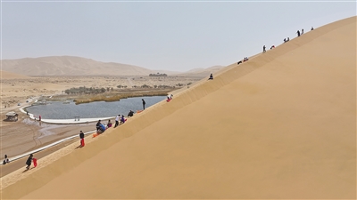 來自全國各地的游客在巴丹吉林沙漠中游玩。記者 劉宏章 攝