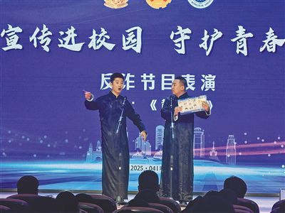 4月17日,首場活動在內(nèi)蒙古大學(xué)舉行。活動現(xiàn)場,青年民警脫去警服穿起長衫,將反詐知識排成相聲;戴上墨鏡、拿起麥克風(fēng),民警現(xiàn)場唱起了反詐rap;專業(yè)律師走上舞臺“以案釋法”,從專業(yè)角度解讀電信詐騙;現(xiàn)場反詐知識有獎問答環(huán)節(jié),吸引同學(xué)們踴躍互動……一個個從各個盟市公安局精心遴選而來的反詐節(jié)目,與兼具知識性與趣味性的環(huán)節(jié)設(shè)置,讓現(xiàn)場掌聲不斷。