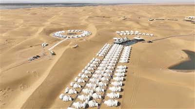 5月18日,記者走進阿拉善孿井灘生態移民示范區的通湖草原旅游景區,只見人潮涌動,游客游玩在廣袤的綠洲湖泊沙海間,或騎著沙漠沖浪車風馳電掣,在沙丘間快速穿梭,尖叫聲與歡笑聲交織;或體驗駱駝騎行,在起伏的沙海中緩緩前行欣賞大漠風光;觀看《馬到成功》實景演出,震撼人心的表演讓游客盡享一場視聽盛宴……景區內豐富多彩的各類文旅活動滿足了游客不同需求。