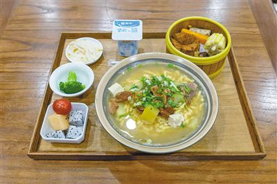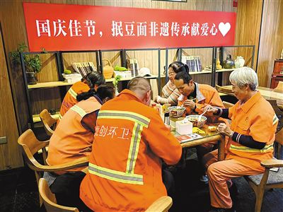 環衛工人免費吃抿豆面。