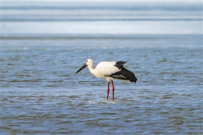 國家一級保護動物東方白鸛。