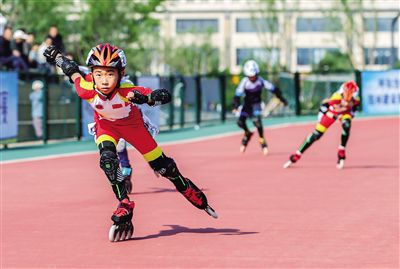 5月24日,小選手們正在進行比賽。當日,“百萬青少年 百縣健康行““奔跑吧 少年”2024—2025呼和浩特青少年冰雪運動會速度輪滑公開賽在萬和體育公園舉行,吸引來自呼和浩特市、鄂爾多斯市和巴彥淖爾市的100余名運動員參賽。記者 孟和朝魯 攝