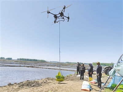 在扎賚特旗好力保鎮先鋒村的稻田里,一架無人機精準懸停在田埂,機械手迅速將秧苗轉運至插秧機,整套操作如行云流水。水稻種植大戶李志國忍不住豎起大拇指:以前插秧時節運送秧苗,全靠人工肩挑背扛,一天下來,運不了多少秧苗,還壓壞不少秧苗,田埂也常常被踩塌。現在有了無人機幫忙,同樣的工作量,時間縮短了一大半。這些“空中快遞員”運輸特別平穩,秧苗幾乎零損傷,成活率也提高了。
