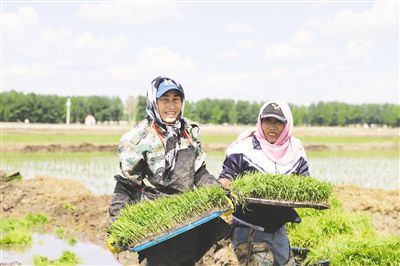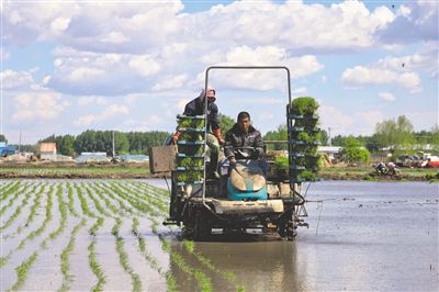 初夏已至,正是興安盟百萬畝水稻插秧黃金時節,農戶們在稻田里爭分奪秒地插秧,一派繁忙景象。走進興安盟突泉縣東杜爾基鎮明星村的集中連片水稻種植基地,縱橫交錯的稻田里水光瀲滟,綠意盎然的稻田與勤勞耕種的稻農勾勒出一幅美不勝收的田園美景。