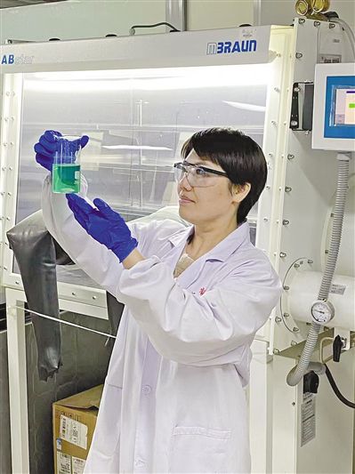 內蒙古大學化工學院教授王蕾在實驗室開展光電催化制氫研究。