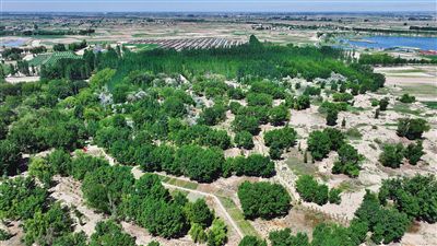 65載光陰流轉(zhuǎn),三代治沙人用青春和汗水創(chuàng)造了治沙奇跡。如今的新華林場(chǎng)林草覆蓋率提升至88%,累計(jì)植樹(shù)695萬(wàn)株,沙化土地全部被殲滅,“‘三北’防護(hù)林+農(nóng)田防護(hù)林+防風(fēng)固沙林”立體防護(hù)體系已然形成。