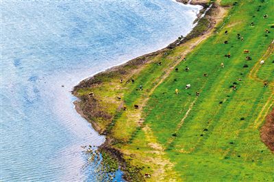 濕地草灘、天然牧場、萬畝林地……烏蘭察布市興和縣澇利海以2360畝橢圓形湖泊為核心,串聯起風光優美的生態矩陣,吸引不少市民游客前來游玩,成為京津冀地區及周邊省市區游客“反向旅游”的新晉網紅打卡地。(記者 王曉博攝)