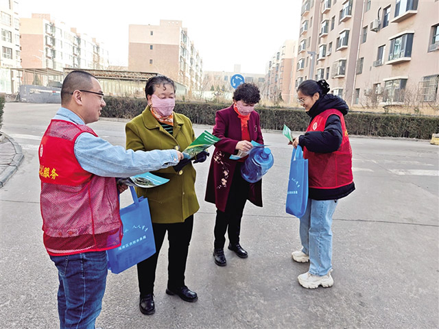 海南區(qū)農(nóng)牧水務(wù)局進(jìn)社區(qū)宣傳節(jié)約用水。 劉正陽(yáng) 攝