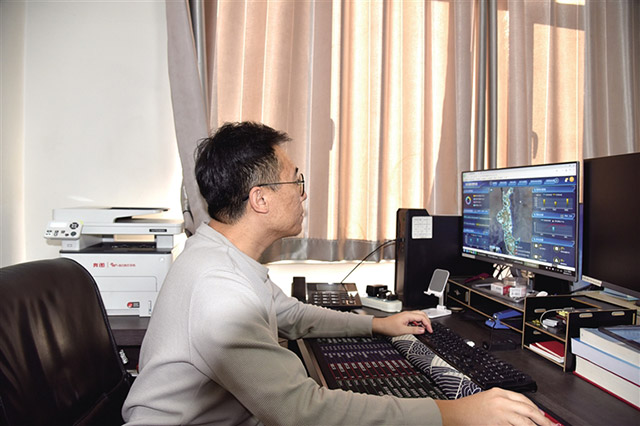 烏海市水務(wù)局工作人員在水資源管理系統(tǒng)上查看節(jié)水情況。郝飚 攝