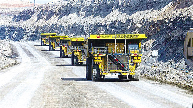 黑岱溝露天煤礦正在工作的無人駕駛礦卡。
