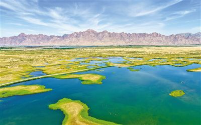 夏日里的巴彥淖爾市杭錦后旗屠申澤濕地風景宜人。屠申澤濕地毗鄰綿延起伏的陰山和浩浩蕩蕩的黃河,近年來通過生態修復,已累計補水1400萬立方米,水面面積由最初的3300畝增加至目前的5000畝左右,濕地功能區域不斷完善。記者 孟和朝魯攝