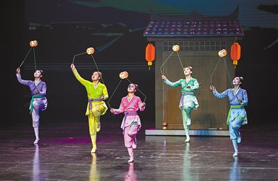 在第二屆“中國雜技北疆行”精品展演中,演員表演雜技《雅趣·空竹》。