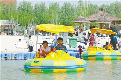 小朋友在烏海市濱河生態園內體驗夏日“親水”項目。郝鑫 攝