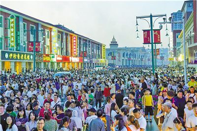 呼和浩特市回民區牛街美食街人氣旺,成為市民與游客夜間休閑娛樂的熱門目的地。記者 王曉博 攝